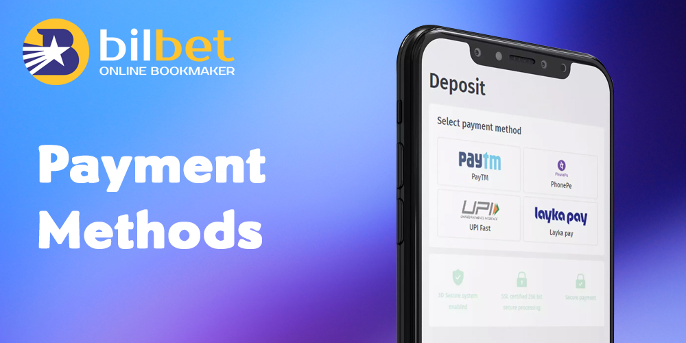 As mentioned above, the Bilbet bookmaker offers many different payment systems in India for deposits and withdrawals. The most popular of which are the following methods: