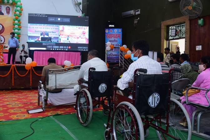 A ‘Samajik Adhikarita Shivir’ for distribution of aids and assistive devices to ‘Divyangjan’ under the ADIP Scheme and to Senior Citizens under the ‘Rashtriya Vayoshri Yojana’ of the Ministry of Social Justice and Empowerment, Government of India was organized by the Department of Empowerment of Persons with Disabilities (DEPwD in association with ALIMCO and District Administration Aurangabad (Bihar) at Town Hall in District Collectorate campus, Aurangabad.