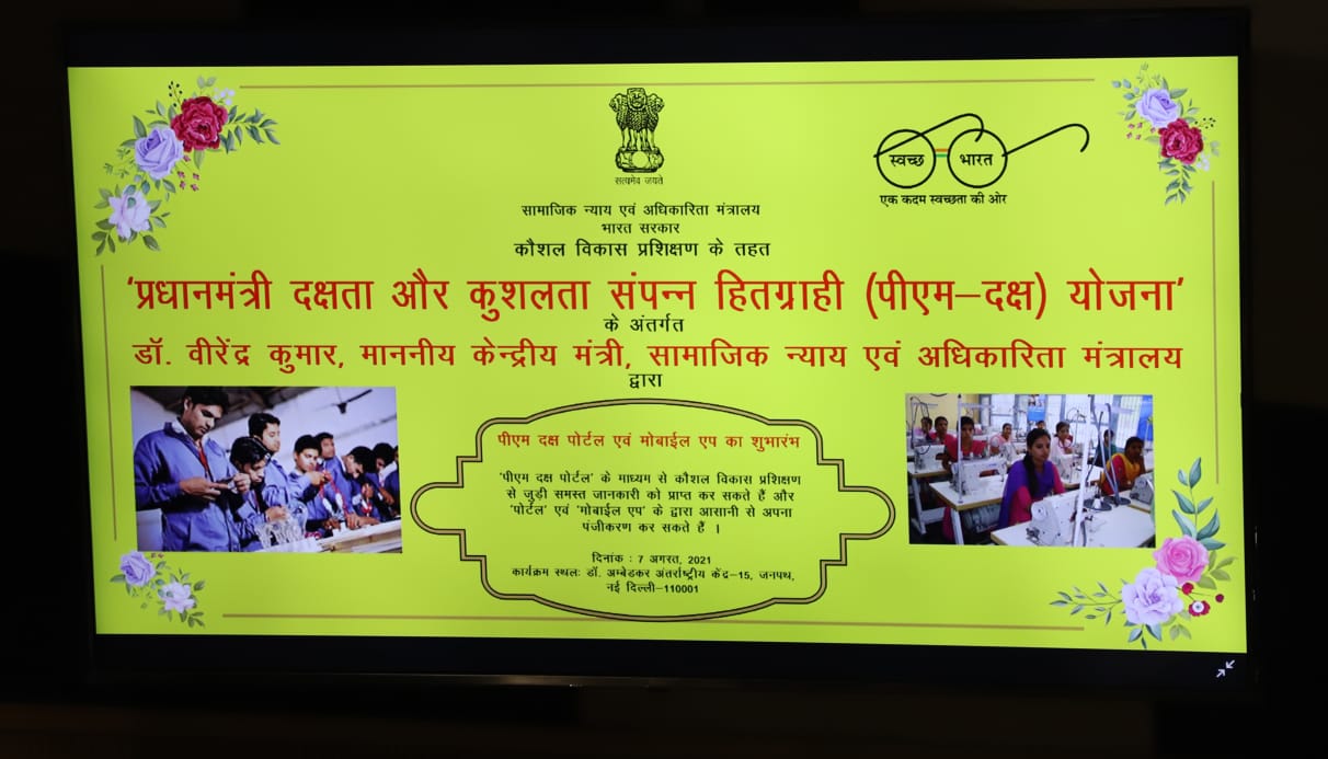 Union Minister for Social Justice and Empowerment Dr. Virendra Kumar launched ‘PM-DAKSH’ Portal and ‘PM-DAKSH’ Mobile App, developed by the Ministry of Social Justice and Empowerment, in collaboration with NeGD, to make the skill development schemes accessible to the target groups. Through these portal and app the youth of the target groups will now be able to avail the benefits of skill development training programmes more easily.