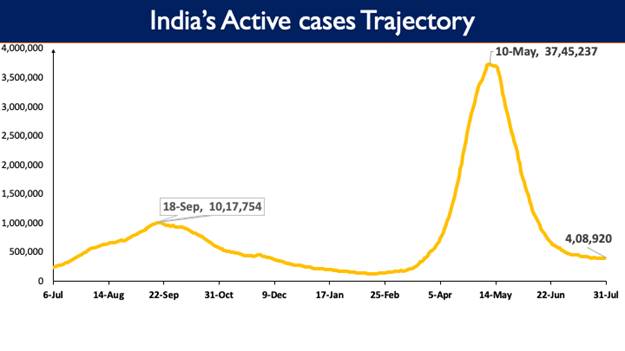 India’s Active Caseload today stands at 4,08,920 and active cases now constitute 1.29% of the country’s total Positive Cases.