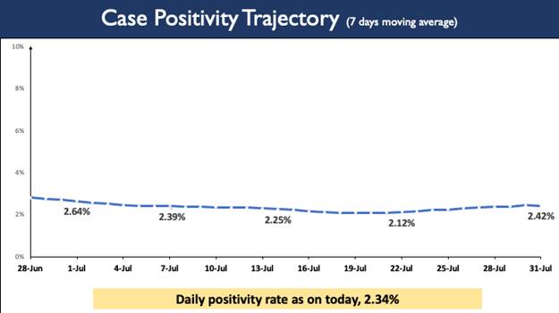 While on one side testing capacity has been enhanced across the country, Weekly Positivity Rate is currently at 2.42% and the Daily Positivity rate stands at 2.34% today. Daily Positivity rate has remained below 5% for 54 consecutive days now.