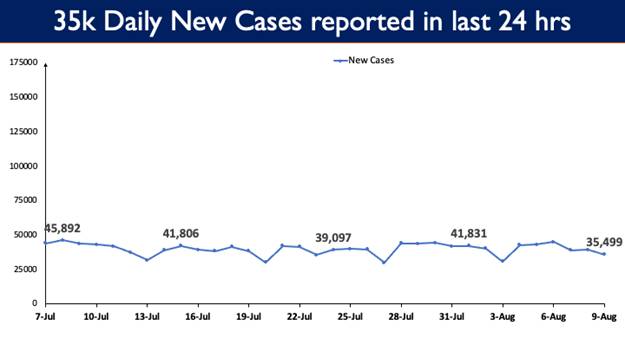 Less than 50,000 Daily New Cases have been reported since forty-threeconsecutive days. This is a result of sustained and collaborative efforts by the Centre and the States/UTs.