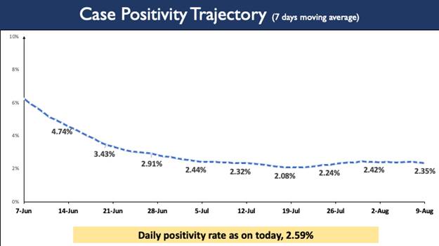 While on one side testing capacity has been enhanced across the country, Weekly Positivity Rate currently stands at 2.35% and the Daily Positivity rate stands at 2.59% today. Daily Positivity rate has remained below 3% forlast 14 days and below 5% for 63 consecutive days now.