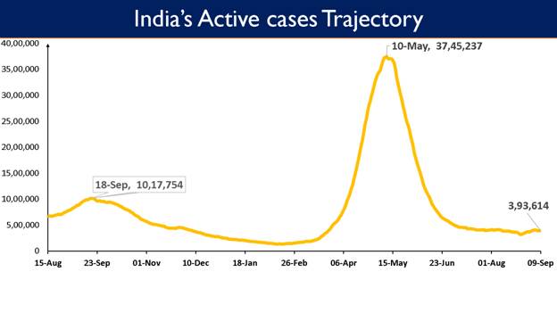 Sustained and collaborative efforts by the Centre and the States/UTs continue the trend of less than 50,000 Daily New Cases that is being reported for 74 consecutive days now.