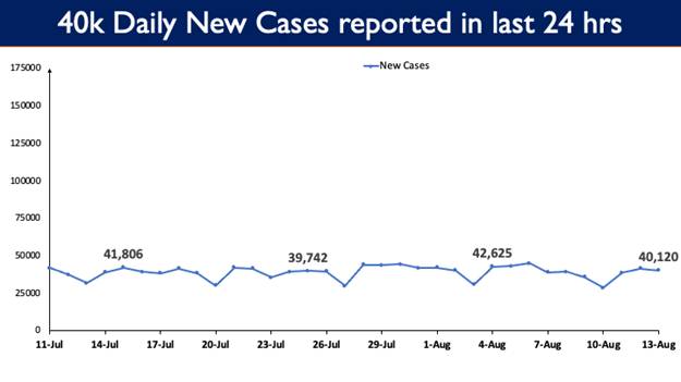 Less than 50,000 Daily New Cases have been reported since forty-sevenconsecutive days. This is a result of sustained and collaborative efforts by the Centre and the States/UTs.