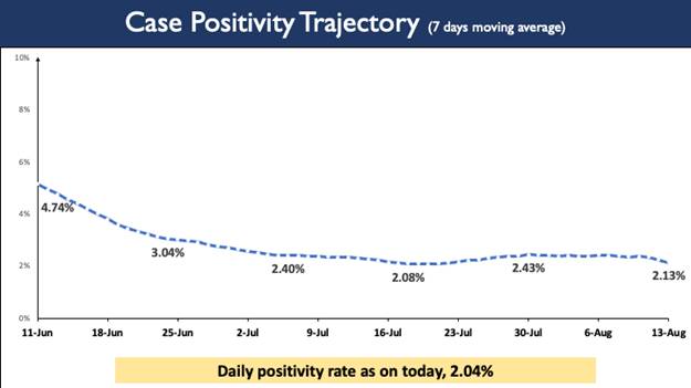 While on one side testing capacity has been enhanced across the country, Weekly Positivity Rate currently stands at 2.13% and the Daily Positivity rate stands at 2.04% today. Daily Positivity rate has remained below 3% forlast 18 days and below 5% for 67 consecutive days now.