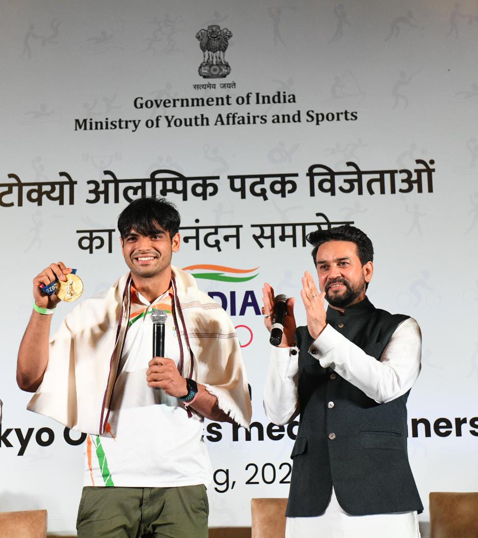 Let me first congratulate our Olympians, our medalists on behalf of 135 crore Indians for their outstanding performance. We are so proud of everyone: Union Minister @ianuragthakur #Tokyo2020 #Olympics #Cheer4India pic.twitter.com/woTsHoqo4e