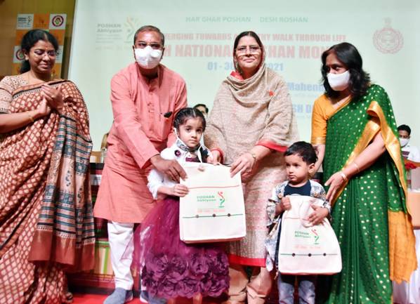 As part of the POSHAN Maah celebrations under the ‘Azadi ka Amrit Mahotsav’, the Minister of State for Women and Child Development, Dr. Munjpara Mahendrabhai today distributed nutrition kits to beneficiaries at Pachgaon Village in Haryana. The minister also flagged off a ‘Poshan Rath’ (Chariot) from Amity University which will go along rural paths and spread awareness about proper nutrition and diet among rural women and children.
