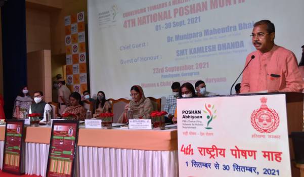Dr. Munjpara also participated in a plantation ceremony wherein various nutritional plants were planted and visited an exhibition displaying interesting nutritive recipes and IEC material on POSHAN Abhiyan. A shapath or Pledge on POSHAN was also undertaken by all the participants. The WCD Minister of Haryana, Smt Kamlesh Dhanda and Principal Secretary, WCD, Govt. of Haryana Dr. G. Anupama along with other dignitaries graced the occasion.