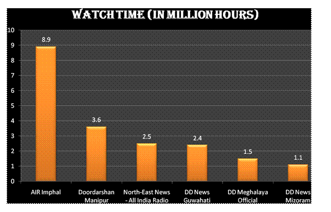 Most of these Northeast channels of Prasar Bharati have digital views and watch time hours in Millions, wherein Doordarshan and All India Radio channels of Manipur top the charts.