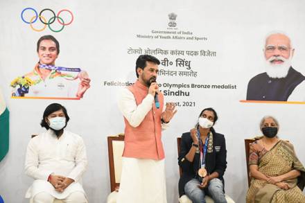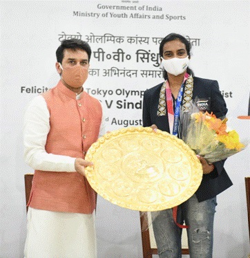 Speaking at the event, Shri Thakur said, “PV Sindhu is amongst India’s greatest Olympians. She is India’s icon, inspiration and has caught the imagination of every Indian who dreams of playing for the country. Her incredible achievement – that of winning two Olympic medals in two consecutive Olympic Games will inspire a generation of budding athletes. Her success shows how the Target Olympic Podium scheme of the government has nurtured our Olympic hopefuls towards a podium finish. Just before setting off for Tokyo Olympics, she had an interaction with Prime Minister Narendra Modi and right after her victory he was the first person to call her and congratulate her. The nation of 130 crore Indians is thrilled by her smashing performance!”