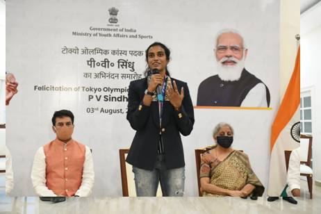 - Union Ministers Smt. NirmalaSitharaman, Shri G Kishan Reddy and Shri NisithPramanik also attended the event and felicitated P V Sindhu