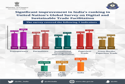 Significant improvement in India’s score in United Nation’s Global Survey on Digital and Sustainable Trade Facilitation