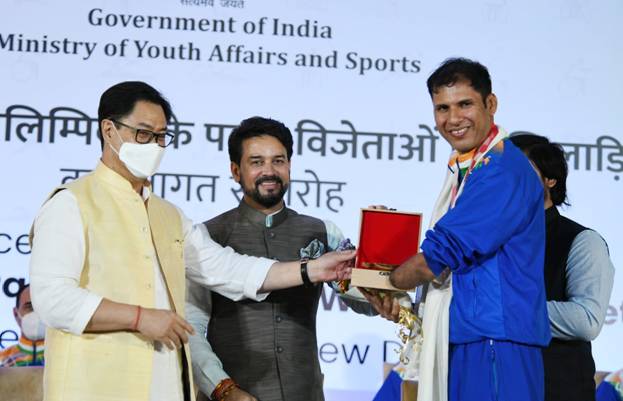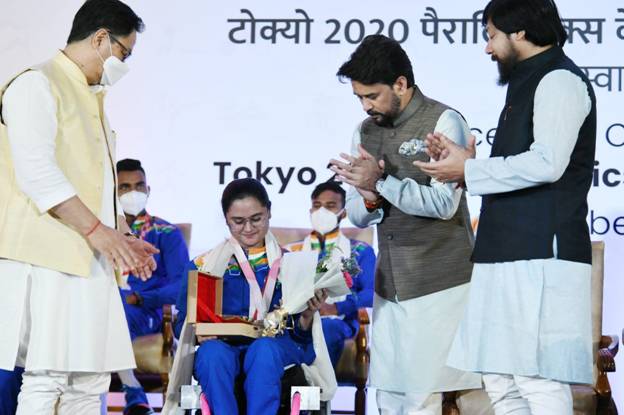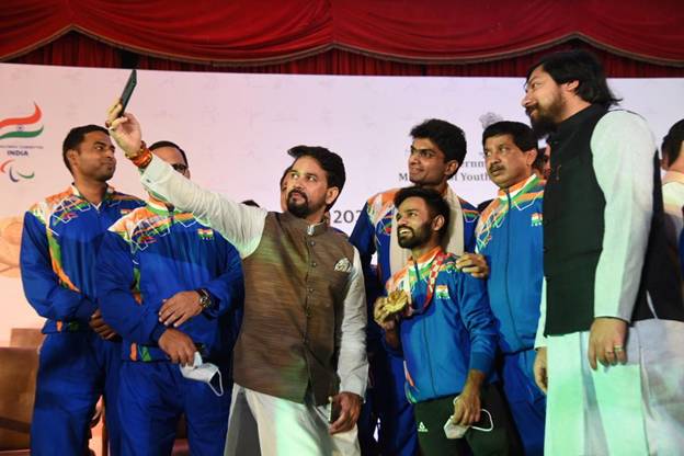 During his address Shri Anurag Thakur congratulated all the para athletes for their fantastic performance and said, “I recall in the 2016 Paralympics, the size of the Indian contingent was 19, while this year the country has won as many as 19 medals! You have shown us that the human spirit is the most powerful of all ! Our medal tally has increased by about five times. For the first time we have won medals in Table Tennis, won multiple medals in Archery, competed for the first time in canoeing and powerlifting. We equalled two world records and we broke even more. India’s para athletes delivered a perfect podium finish!”