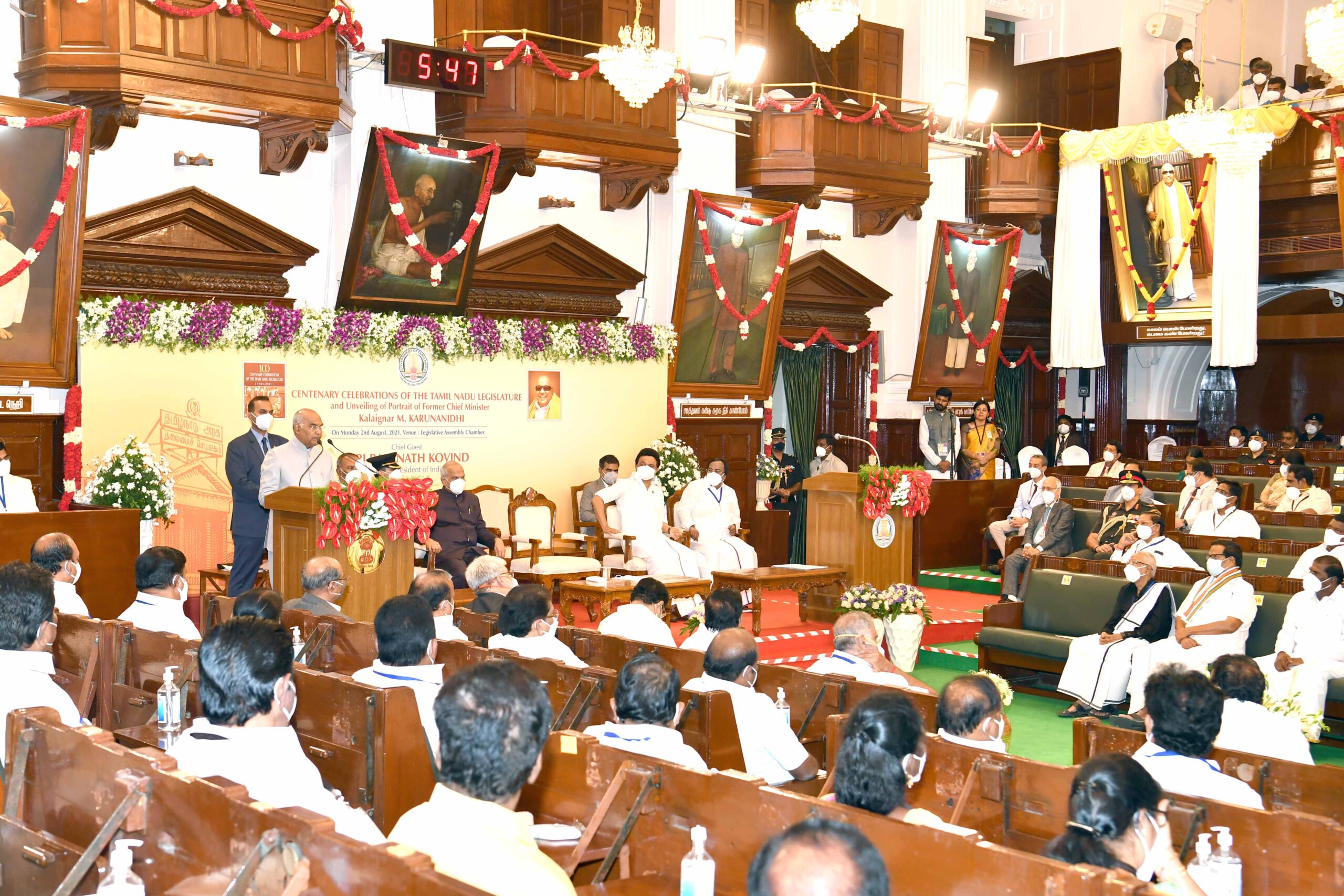 The Madras Legislative Council had sown seeds of a fully representative democratic form of governance which were realised after Independence, said the President of India, Shri Ram Nath Kovind. He was speaking at the commemoration of the 100th year of the Madras Legislative Council in Chennai today (August 2, 2021). He also unveiled a portrait of the former Chief Minister of Tamil Nadu, Dr Kalaignar M. Karunanidhi in the premises of the Legislative Assembly of Tamil Nadu on the occasion.