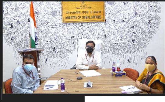 Minister of Tribal Affairs, Sh. Arjun Munda inaugurated a ‘Three day National level Virtual Training of Trainers Programme on Forest Rights Act, 2006,’ as part of Azadi ka Amrit Mahotsav/Parv in New Delhi on 2nd August, 2021. The virtual training programme is being organized jointly by Ministry of Tribal Affairs, National Tribal Research Institute , New Delhi, Tribal Research and Training Institute Chhattisgarh and UNDP from 2nd-4th August, 2021. Minister of State for Tribal Affairs, Smt. Renuka Singh Saruta, Secretary, Ministry of Tribal Affairs, Joint Secretary, MoTA, Smt. R. Jaya and Joint Secretary, Shri Nava Jit Kapoor were also present on the occasion along with large number of other officers of Ministry as well as representatives of NTRI and UNDP, State TRIs
