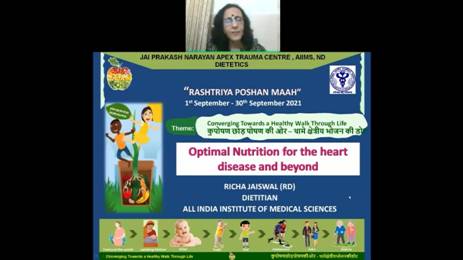 Ms. Richa Jaiswal, Senior Dietician, All India Institute of Medical Sciences, New Delhi gave detailed information on optimal nutrition for Heart Health and beyond. A chart showing age-wise nutrition needs was also shared with the participating NGOs by them.