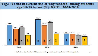 - Use of any form of tobacco was higher among boys than girls.