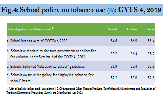 - 85% of school heads were aware of COTPA, 2003.