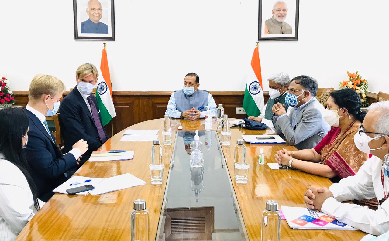 Union Minister of State (Independent Charge) Science & Technology; Minister of State (Independent Charge) Earth Sciences; MoS PMO, Personnel, Public Grievances, Pensions, Atomic Energy and Space, Dr Jitendra Singh today called for Global Scientific Collaboration for bringing “Ease of Living” for common man. A Swedish Delegation led by Ambassador KlasMolin called on the Union Minister to discuss and review bilateral cooperation in Science and Technology and Innovation.