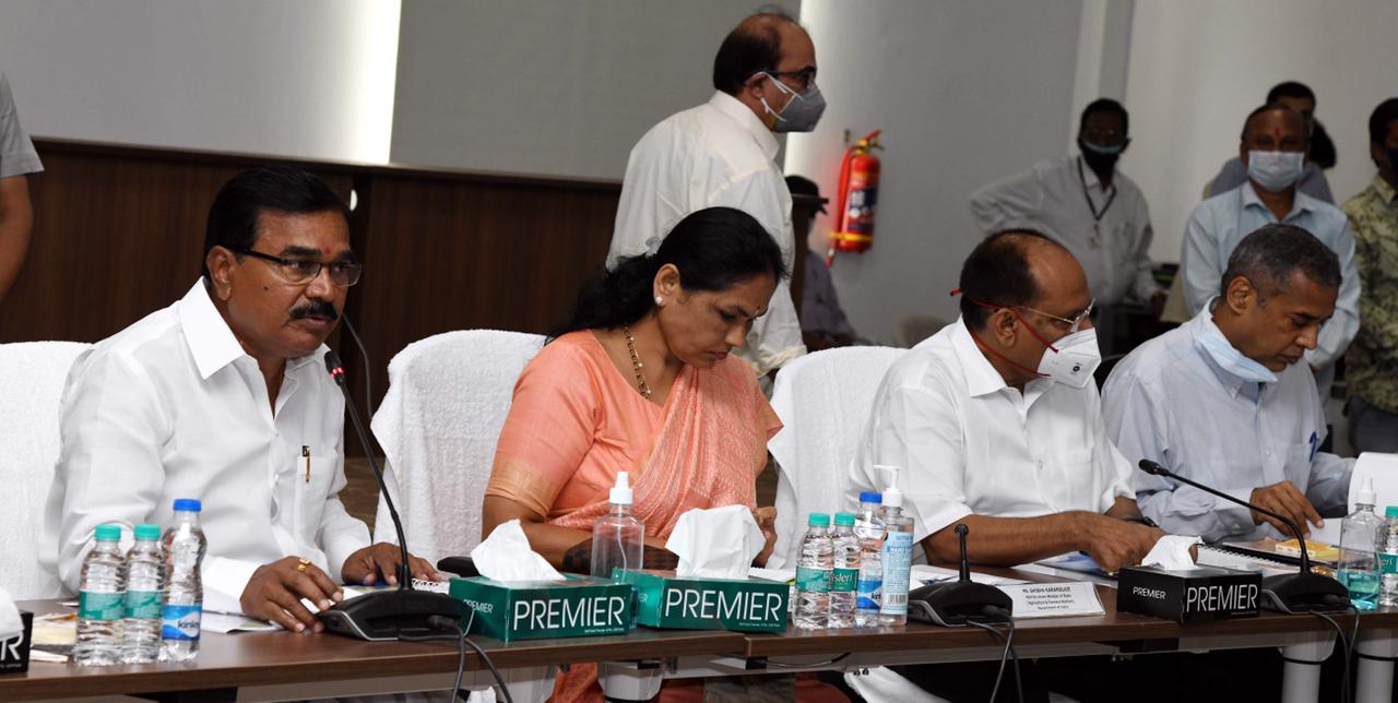 Union Minister of State for Agriculture and Famers Welfare Ms. Shobha Karandlaje,review meeting with State officials regarding the implementation of Central Schemes in Agriculture in the Telangana State, Hyderabad today.Telangana State Minister for Agriculture, Cooperation and Marketing Shri S Niranjan Reddy , Chief Secretary of Telangana Sri Somesh Kumar , other officals are also seen