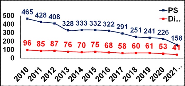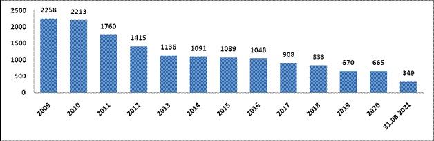 Owing to improved scenario, the number of SRE districts were reviewed twice in last 03 years with a reduction from 126 districts to 90 in Arpil-2018 and then to 70 in July-2021. The number of most LWE affected districts were also reduced from 35 to 30 in April-2018 and further reduced to 25 in July 2021.